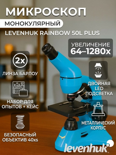 Микроскоп монокулярный Levenhuk Rainbow 50L PLUS Azure/Лазурь - ДоставкаДоставка по Санкт-Петербургу: бесплатно, 2-3 дня Доставка по России: стоимость уточняйте у оператора. Микроскоп монокулярный Levenhuk Rainbow 50L PLUS Azure/Лазурь - Отзывы0.0