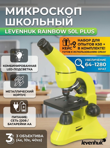 Микроскоп монокулярный Levenhuk Rainbow 50L PLUS Lime/Лайм - ДоставкаДоставка по Санкт-Петербургу: бесплатно, 2-3 дня Доставка по России: стоимость уточняйте у оператора. Микроскоп монокулярный Levenhuk Rainbow 50L PLUS Lime/Лайм - Отзывы0.0