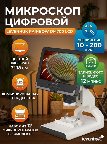 Микроскоп цифровой Levenhuk Rainbow DM700 LCD - ДоставкаДоставка по Санкт-Петербургу: бесплатно, 2-3 дня Доставка по России: стоимость уточняйте у оператора. Микроскоп цифровой Levenhuk Rainbow DM700 LCD - Отзывы0.0