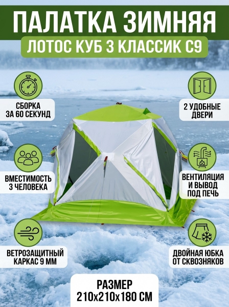 Палатка зимняя Лотос Куб 3 Классик С9 2022 - БрендСтрана бренда: Россия Страна производства: Россия Премиальность бренда:Палатка зимняя Лотос Куб 3 Классик С9 2022 - Характеристики
