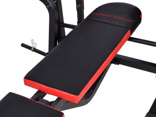 Прорезиненные ножки и прорезиненные накладки на стойки, обеспечивают бесшумное и безопасное выполнение упражнений, а также исключают проскальзывание как самой скамьи, так и штанги. В комплекте со скамьей поставляются пружинные замки для дисков.