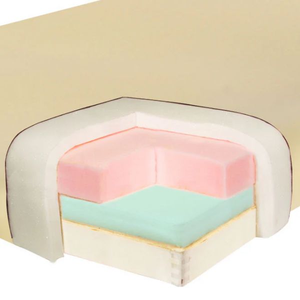 Мягкая обивка выполнена из прочного полиуретана (PU) в стильных цветах «песочный/чёрный». Материал устойчив к воздействию влаги и масел, не содержит вредных CFC, а внутренняя подкладка, напоминающая джинсовую ткань, повышает износостойкость.
