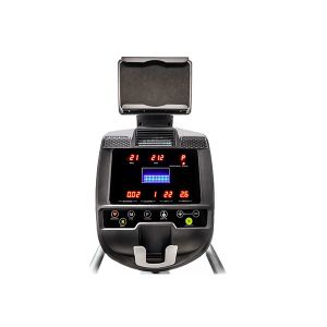 Показания консоли: - профиль; - время; - дистанция; - скорость; - обороты в мин.; - урони; - наклон; - калории; - калории в час; - пульс; - метаболические ед-цы; - Ватты.