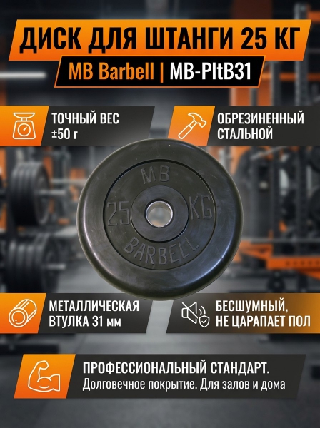 Диск обрезиненный MB Barbell MB-PltB31-25 - БрендMB Barbell – это торговая марка, представляющая специализированное и высококачественное оборудование для оснащения спортивных залов.
