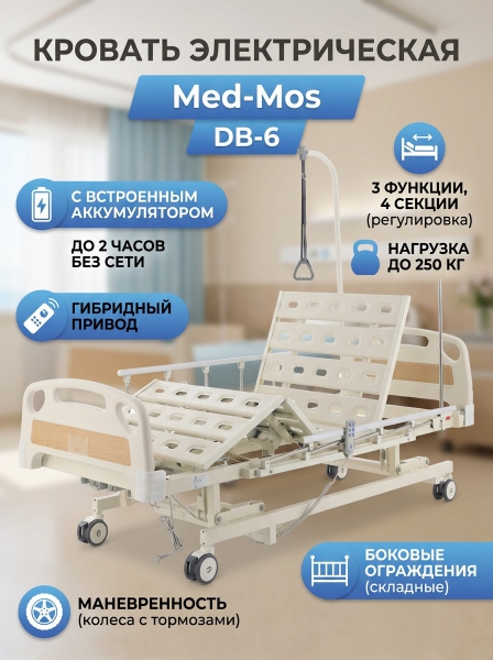 Кровать электрическая Мед-Мос DB-6 (ABS) с аккумулятором - ДоставкаДоставка по Санкт-Петербургу: бесплатно, 2-3 дня Доставка по России: стоимость уточняйте у оператора. Кровать электрическая Мед-Мос DB-6 (ABS) с аккумулятором - Отзывы0.0