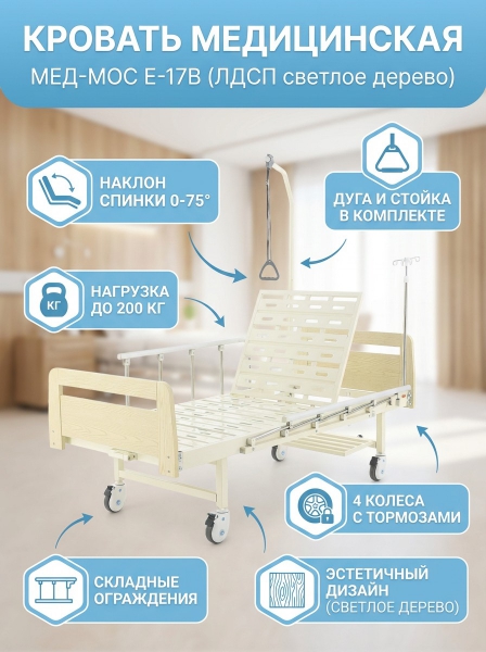 Кровать механическая Мед-Мос E-17B (ЛДСП светлое дерево) - ДоставкаДоставка по Санкт-Петербургу: бесплатно, 2-3 дня Доставка по России: стоимость уточняйте у оператора. Кровать механическая Мед-Мос E-17B (ЛДСП светлое дерево) - Отзывы0.0
