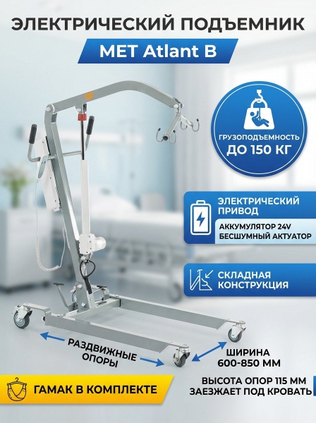 Подъемник электрический с гамаком MET Atlant B - ДоставкаДоставка по Санкт-Петербургу: бесплатно, 2-3 дня Доставка по России: стоимость уточняйте у оператора. Подъемник электрический с гамаком MET Atlant B - Отзывы0.0