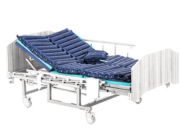 Малогабаритный электрокомпрессор размещается на полу или на боковой панели кровати. Регулировка задаваемого давления осуществляется в зависимости от массы пациента. Противопролежневый матрас обладает эффектом непрерывного массажа, предотвращает застои и не дает развиваться некрозу мягких тканей лежачего пациента.