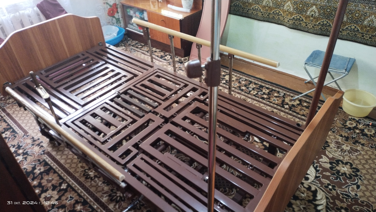 Подбирала кровать для полностью лежачего больного, именно в ней меня устроило всё, главное что можно поднять выше в изголовье, посадить, опустить ноги,помыть, повернуть набок, что важное для нас палка для подтигивания, несмотря на то, что мы делаем это левой рукой, а опора с правой стороны и тд. Кровать собираеться очень легко, спасибо производителю