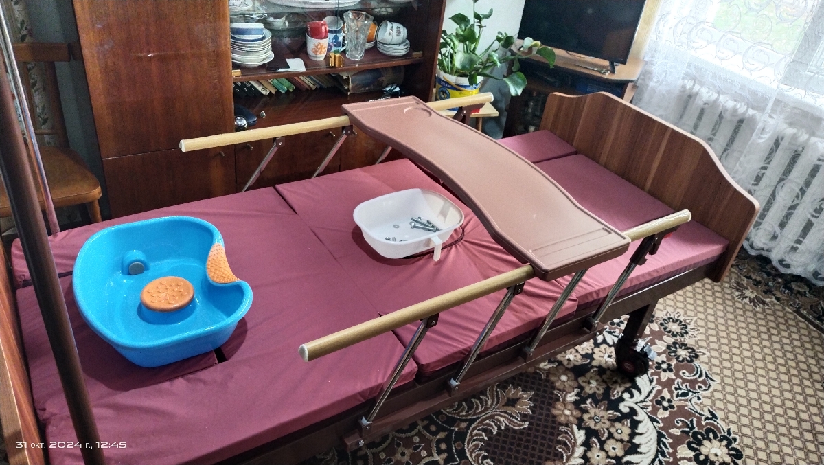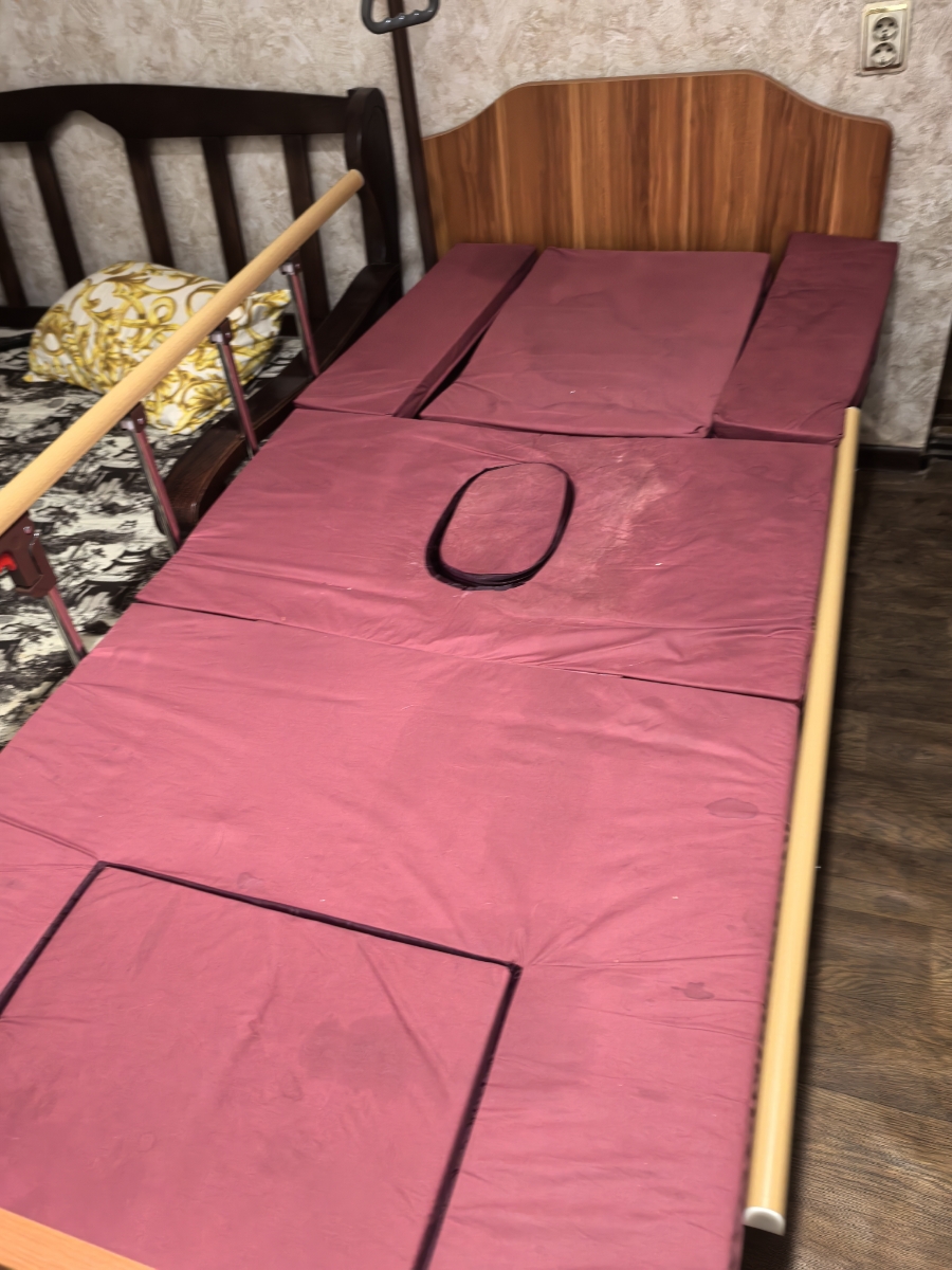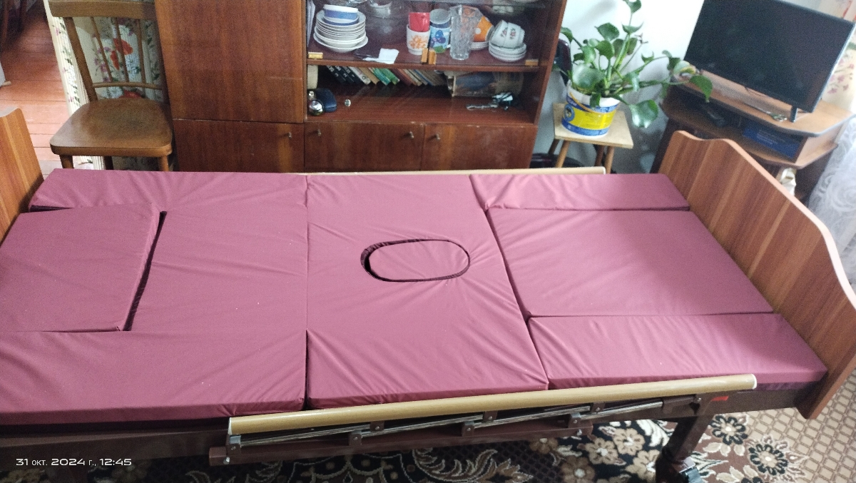 очень помогает в уходе за свекровью, поворачивается на бочок, ножки в кардио кресло можно поставить. единственное - жёсткий матрас, пришлось сверху протвопролежневый положить. матрас в комплектации не для лежачих тяжёлых больных,а для относительно здоровых людей, любящих спать на жёстком)