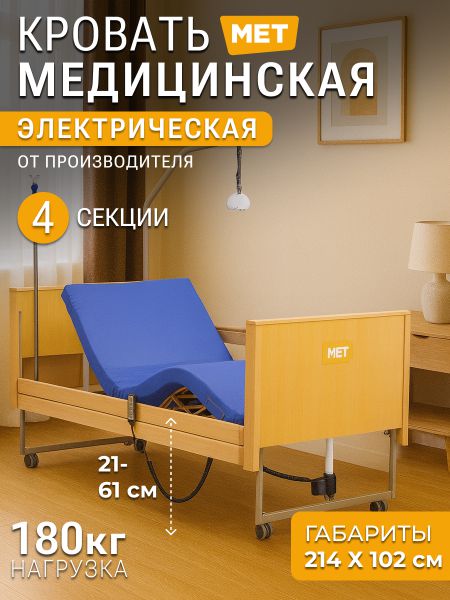 Медицинская кровать MET TERNA LOW - ОписаниеTERNA LOW — это медицинская кровать с электроприводом, состоящая из четырех секций. Она создана для обеспечения комфортного ухода за пациентами в домашних условиях, в пансионатах для пожилых людей, а также в платных отделениях лечебно-профилактических учреждений.