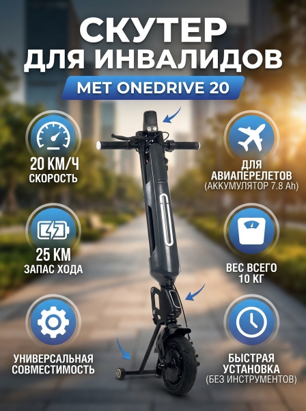 Скутер для инвалидов MET ONEDRIVE 20 - ДоставкаДоставка по Санкт-Петербургу: бесплатно, 2-3 дня Доставка по России: стоимость уточняйте у оператора. Скутер для инвалидов MET ONEDRIVE 20 - Отзывы0.0