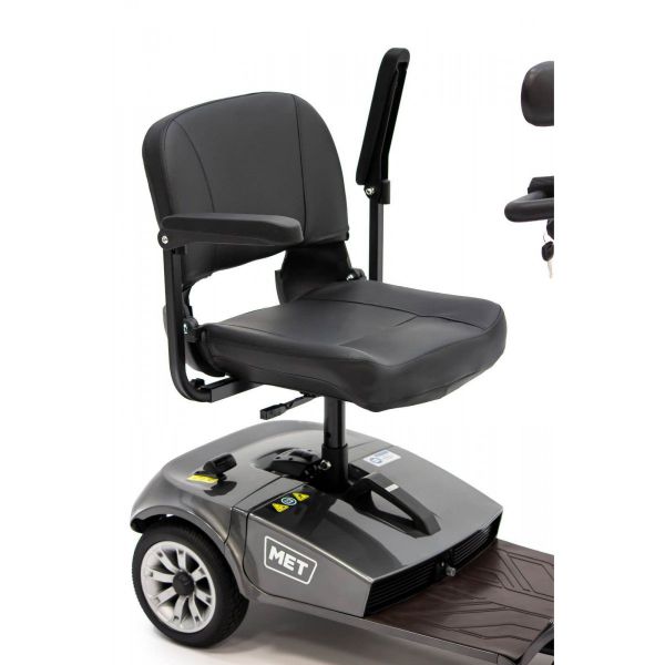Скутер MET EXPLORER 300 оборудован откидными подлокотниками и вращающимся на 360 градусов креслом, что обеспечивает легкую посадку и высадку людям с ограниченными возможностями передвижения.