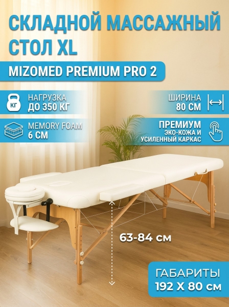 Складной массажный стол Mizomed Premium Pro 2 XL (80см) cream - Обзор ТОП-10 лучших столов для массажа 2025 🏆: Обзор и рейтинг