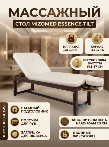 Массажный стол Mizomed Essence-Tilt SET3S30+H - БрендПремиальность бренда:Посмотреть все массажные стационарные столы-кушетки Mizomed (9) Массажный стол Mizomed Essence-Tilt SET3S30+H - Характеристики