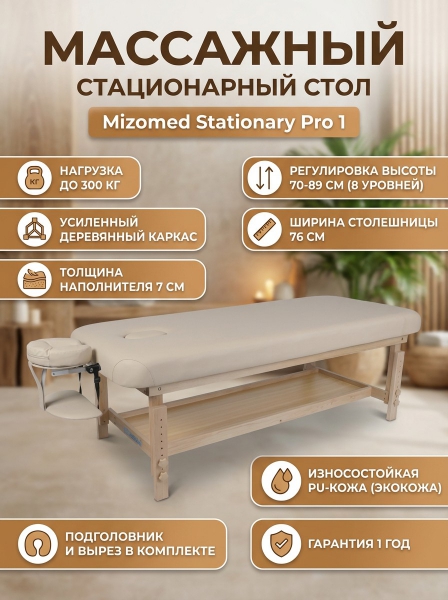 Массажный стол Mizomed Stationary Pro 1, бежевый - Обзор ТОП-10 лучших столов для массажа 2025 🏆: Обзор и рейтинг