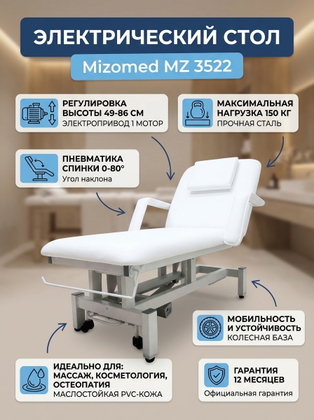 Стол массажный электрический Mizomed MZ 3522 - Обзор ТОП-10 лучших столов для массажа 2025 🏆: Обзор и рейтинг