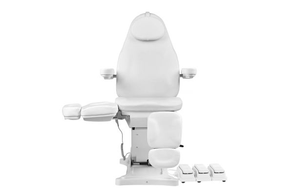 Педикюрное кресло Mizomed MZ 3595 с электроприводом пульт и педадли - ОписаниеВысококомфортабельное кресло. Оснащено тремя электромоторами для контроля высоты, угла наклона спинки и ножной части. Подвижные подлокотники, подголовник с отверстием для лица. Высококачественная и легкоочищаемая обивка из прочной экокожи.