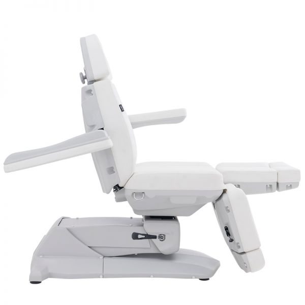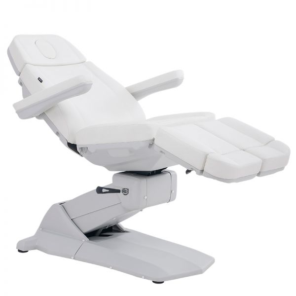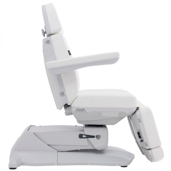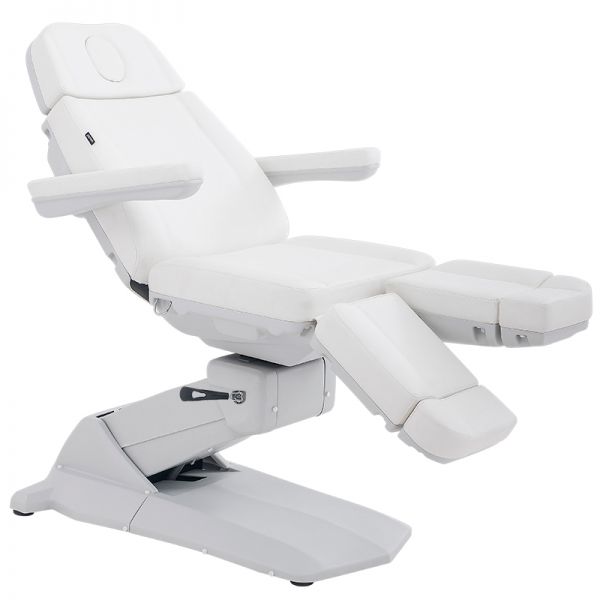 Современное педикюрное кресло высокого класса с очень устойчивой конструкцией. Оснащено 3-я двигателями, которые регулируют высоту, наклон спинки и угол наклона сиденья. Подножки регулируются по высоте независимо с помощью газлифтов. Откидные подлокотники и регулируемый подголовник с отверстием для лица. Обивка из высококачественного полиуретана, легко моющегося и прочного.