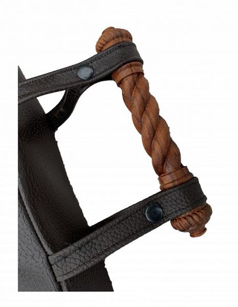 Верхняя крышка доски украшена резным изображением граната - сочного и вкусного фрукта. Изображенный в разрезе, он поражает детализированностью: вырезаны не только прожилки на листочках, но и зерна граната изображены фактурно и максимально реалистично. От царапин доску, части которой скреплены между собой медными петлями, защищают подложки на фишках и покрытие глянцевым лаком.
