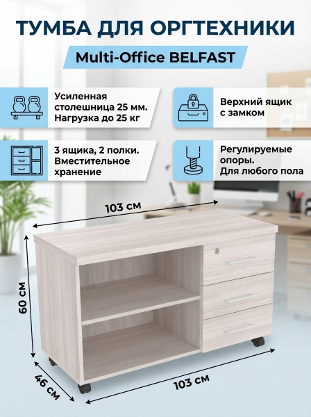 Тумба стационарная для оргтехники Multi-Office Belfast 103х46х60 - ДоставкаДоставка по Санкт-Петербургу: бесплатно, 2-3 дня Доставка по России: стоимость уточняйте у оператора. Тумба стационарная для оргтехники Multi-Office Belfast 103х46х60 - Отзывы0.0