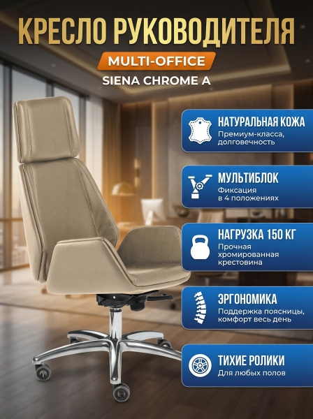 Кресло Multi-Office Siena Chrome A, кожа бежевая Madras Naturale - Обзор ТОП-10 лучших ортопедических кресел 2025 🏆: Обзор и рейтинг
