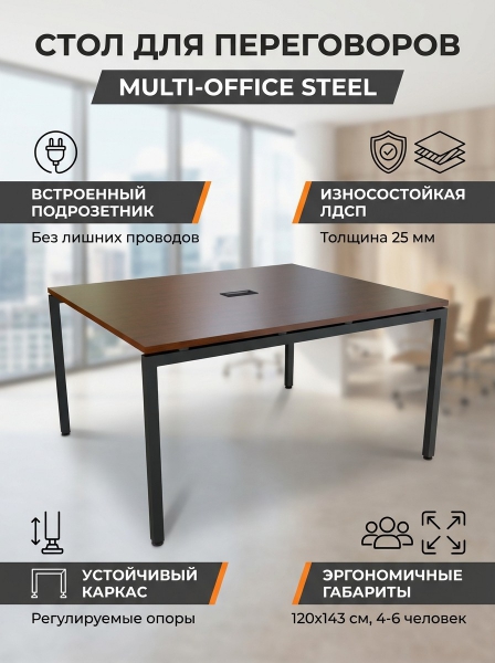Стол для переговоров Multi-Office Steel с подрозетником 120х143, тёмный дуб/антрацит - ДоставкаДоставка по Санкт-Петербургу: бесплатно, 2-3 дня Доставка по России: стоимость уточняйте у оператора. Стол для переговоров Multi-Office Steel с подрозетником 120х143, тёмный дуб/антрацит - Отзывы0.0