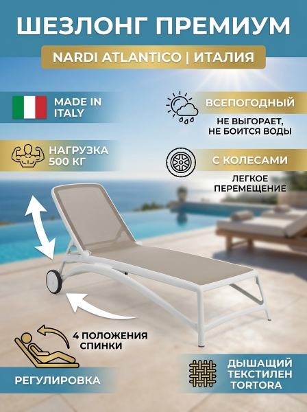 Шезлонг-лежак пластиковый Nardi Atlantico корпус белый - Преимущества