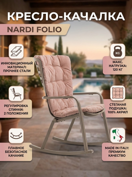 Кресло-качалка пластиковое с подушкой Nardi Folio, тортора, розовый - БрендСтрана бренда: Италия Страна производства: Италия Премиальность бренда:Кресло-качалка пластиковое с подушкой Nardi Folio, тортора, розовый - Характеристики