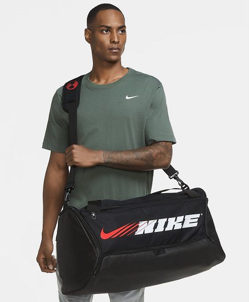 Сумка спортивная Nike Brasilia черная - ОписаниеСумка Nike Brasilia имеет просторное основное отделение и отдельную зону на молнии внизу, позволяющую разделить обувь или грязные вещи. Внутренние и внешние карманы на молнии предусмотрены для удобного хранения необходимых мелочей.