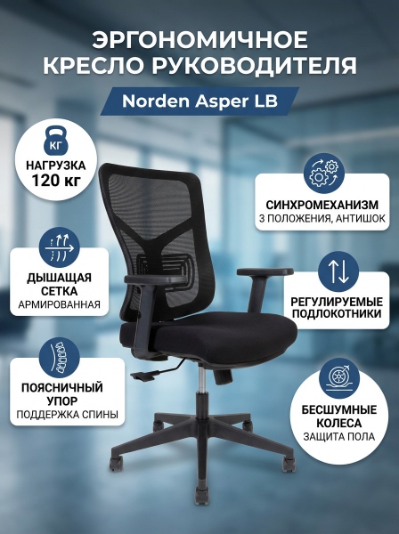 Кресло офисное Norden Asper LB (черный пластик/черная сетка/черная ткань) - Преимущества