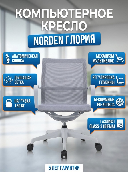 Кресло для персонала Norden Глория - Обзор ТОП-10 лучших ортопедических кресел 2025 🏆: Обзор и рейтинг