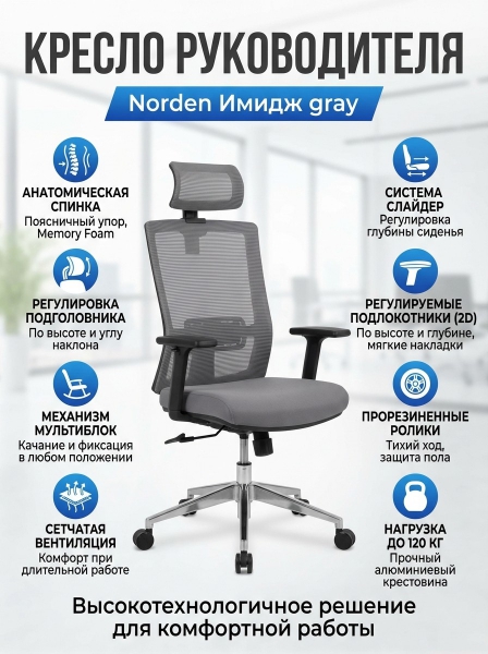 Кресло для руководителя Norden Имидж gray - Обзор ТОП-10 лучших ортопедических кресел 2025 🏆: Обзор и рейтинг