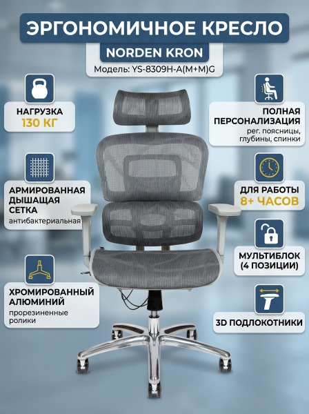 Кресло офисное Norden Kron - ОписаниеСомневаетесь? - Посмотрите рейтинг ТОП-10 по категории «Ортопедические кресла»Ультрасовременное эргономичное офисное кресло с высокой спинкой. Регулировка высоты и угла подголовника. Многофункциональный механизм с половинным проводным управлением. Задний наклон с 4-позиционным замком, а так же регулировка наклона-натяжения. Регулировка высоты сиденья делает кресло максимально удобным под разный рост. Хромированный алюминиевый задний кронштейн с регулировкой высоты спинки указывает на статус и качество материалов исполнения. Поясничная поддержка. 3D подлокотники регулируются по высоте, поворачиваются влево и вправо, вперед и назад. Огнеупорная и анти плесневеющая сетка для подголовника, спинки, сиденья. Нагрузка 130 кг. Гарантия год.