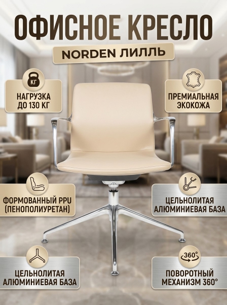 Кресло для посетителя Norden Лилль CF - ОписаниеСомневаетесь? - Посмотрите рейтинг ТОП-10 по категории «Ортопедические кресла»Кресло для зон ожидания First class. Материал высококачественная экокожа. Спинка, внешняя сторона подлокотников и нижняя часть сиденья у кресла отделано высококачественной экокожей. Сиденье и спинка формованное PPU. Подлокотники кожа/экокожа. Механизм поворотный. Крестовина полированный алюминий.