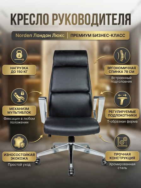 Кресло для посетителя Norden Лондон Люкс black PU - Обзор ТОП-10 лучших ортопедических кресел 2025 🏆: Обзор и рейтинг