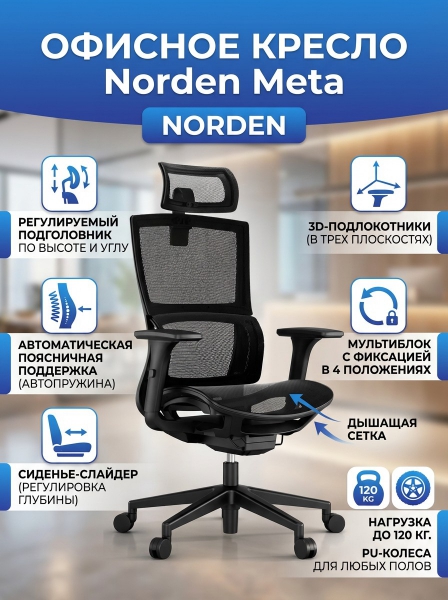 Кресло офисное Norden Meta сетка - Обзор ТОП-10 лучших ортопедических кресел 2025 🏆: Обзор и рейтинг