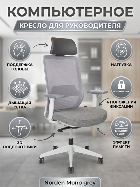 Кресло офисное Norden Mono grey (серый пластик / серая ткань) - Обзор ТОП-10 лучших ортопедических кресел 2025 🏆: Обзор и рейтинг