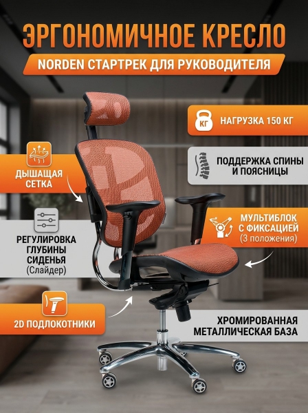 Кресла для руководителя Norden Стартрек сетка - Обзор ТОП-10 лучших ортопедических кресел 2025 🏆: Обзор и рейтинг