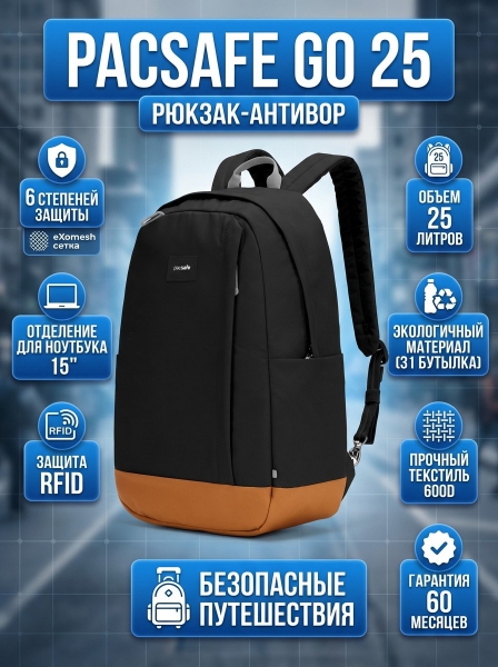 Рюкзак антивор Pacsafe GO 25 черная смола - ДоставкаДоставка по Санкт-Петербургу: бесплатно, 2-3 дня Доставка по России: стоимость уточняйте у оператора. Рюкзак антивор Pacsafe GO 25 черная смола - Отзывы0.0