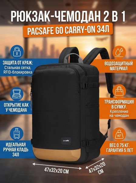 Рюкзак антивор Pacsafe GO Carry-on 34 - ДоставкаДоставка по Санкт-Петербургу: бесплатно, 2-3 дня Доставка по России: стоимость уточняйте у оператора. Рюкзак антивор Pacsafe GO Carry-on 34 - Отзывы0.0