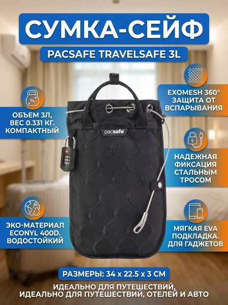 Сумка сейф черный Pacsafe Travelsafe 3L - ДоставкаДоставка по Санкт-Петербургу: бесплатно, 2-3 дня Доставка по России: стоимость уточняйте у оператора. Сумка сейф черный Pacsafe Travelsafe 3L - Отзывы0.0