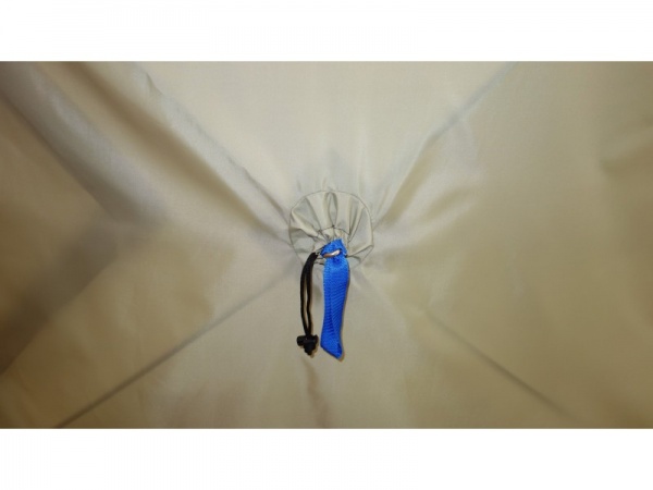 В местах, где находятся оттяжки и расположено окно, имеются затяжные шнурки с фиксаторами. У внутренних стоек вверху предусмотрены карманы под оттяжки. Таким образом, Вы можете максимально закрепить Ваше укрытие, используя дополнительно растяжки и колышки.