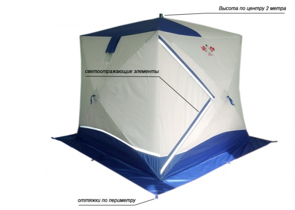 Призма Премиум имеет увеличенные размеры. Теперь в ней могут свободно разместиться четыре человека и комфортно рыбачить как днем, так и ночью! Для удобства сделано два входа. Входы сделаны не по диагонали, как принято на всех импортных аналогах, а напротив друг друга, что позволило оптимизировать внутреннее пространство.