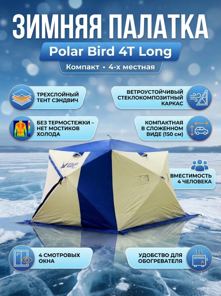 Палатка с быстросборным каркасом Polar Bird 4Т long компакт - ДоставкаДоставка по Санкт-Петербургу: бесплатно, 2-3 дня Доставка по России: стоимость уточняйте у оператора. Палатка с быстросборным каркасом Polar Bird 4Т long компакт - Отзывы5.0