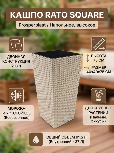 Кашпо для цветов Prosperplast Rato Square - ДоставкаДоставка по Санкт-Петербургу: 795 ₽, 2-3 дня Доставка по России: стоимость уточняйте у оператора. Кашпо для цветов Prosperplast Rato Square - Отзывы0.0