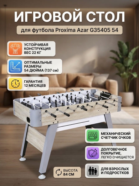 Игровой стол для футбола Proxima Azar G35405 54" - БрендОбъединяя передовые технологии и дизайн, PROXIMA предоставляет новые возможности для усовершенствования Вашего индивидуального спортивного пространства.