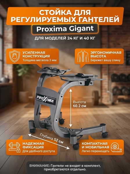 Регулируемые гантели PROXIMA Gigant в комплект не входят и приобретаются отдельно.