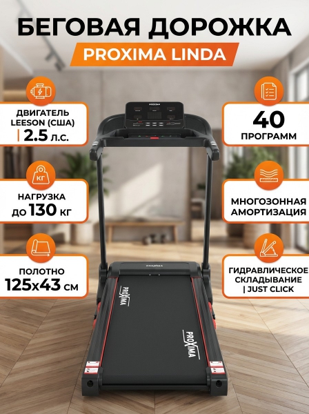 Беговая дорожка электрическая Proxima Linda - ДоставкаДоставка по Санкт-Петербургу: бесплатно, 2-3 дня Доставка по России: стоимость уточняйте у оператора. Беговая дорожка электрическая Proxima Linda - Отзывы0.0