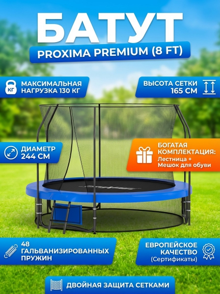 Батут с защитной сеткой и лестницей Proxima Premium 8 FT - ДоставкаДоставка по Санкт-Петербургу: бесплатно, 2-3 дня Доставка по России: стоимость уточняйте у оператора. Батут с защитной сеткой и лестницей Proxima Premium 8 FT - Отзывы5.0